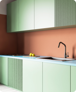 countertops—Erolam HPL sheets offer exceptional resistance to abrasion, impact, moisture, and stains.